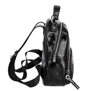 Рюкзак женский маленький городской повседневный с ручкой и регулируемыми ремнями. Материал верха - экокожа. Материал подкладки - полиэстер. Одно отделение на молнии. Внутри: карман для мелочей на передней стенке, карман на молнии на задней стенке. Снаружи: карман на молнии спереди, карман на молнии сзади.