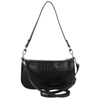 Маленькая женская сумочка на одной ручке на плечо, через плечо (кросс-боди), с дополнительным регулируемым ремешком. Материал верха - экокожа премиум качества. Материал подкладки - полиэстер. Одно отделение на молнии. Внутри: карман для мелочей на передней стенке и карман на молнии на задней стенке. Цвет фурнитуры - серебро.
