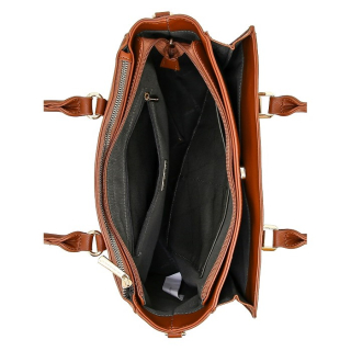 Женская сумка с двумя ручками и регулируемым ремнем на плечо. Материал верха - экокожа премиум качества. Материал подкладки - полиэстер. Три отделения: центральное и заднее на молниях, переднее на магнитном замочке. Внутри: два кармана для мелочей на передней стенке и карман на молнии на задней стенке.