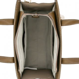 Женская сумка с двумя ручками и регулируемым ремнем на плечо. Материал верха - экокожа премиум качества. Материал подкладки - полиэстер. Одно отделение на молнии. Внутри: карман для мелочей на передней стенке и карман на молнии на задней стенке. Цвет фурнитуры - золото.