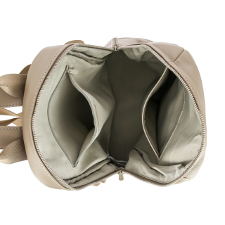 Рюкзак женский городской маленький с ручкой и регулируемыми ремнями. Материал верха - экокожа премиум качества. Материал подкладки - полиэстер. Одно отделение на молнии. Внутри: карман для мелочей на передней стенке и карман на молнии на задней стенке. Снаружи: карман на молнии спереди и карман на молнии сзади. Цвет фурнитуры - под цвет материала.