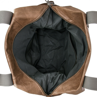 Дорожная сумка с двумя ручками и регулируемым ремнем на плечо. Материал верха - экокожа премиум качества. Материал подкладки - полиэстер. Одно отделение на молнии. Внутри: два кармана для мелочей на передней стенке и карман на молнии на задней стенке. Снаружи: карман на молнии спереди и карман на молнии сзади. Цвет фурнитуры - темное серебро.