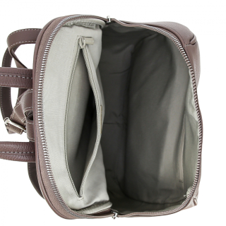 Рюкзак женский городской маленький с ручкой и регулируемыми ремнями. Материал верха - экокожа премиум качества. Материал подкладки - полиэстер. Одно отделение на молнии. Внутри: карман для мелочей на передней стенке и карман на молнии на задней стенке. Снаружи: карман на молнии спереди.