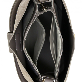 Женская сумка с одной ручкой и регулируемым ремнем на плечо. Материал верха - экокожа премиум качества. Материал подкладки - полиэстер. Три отделения под клапаном: центральное на молнии, боковые без застежек. Внутри: карман для мелочей на передней стенке и карман на молнии на задней стенке. Снаружи: карман сзади. Цвет фурнитуры - золото.