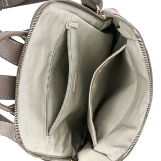 Рюкзак женский городской маленький с ручкой и регулируемыми ремнями. Материал верха - экокожа премиум качества. Материал подкладки - полиэстер. Одно отделение на молнии. Внутри: карман для мелочей на передней стенке и карман на молнии на задней стенке. Снаружи: два кармана на молниях спереди и карман на молнии сзади. Цвет фурнитуры - золото.