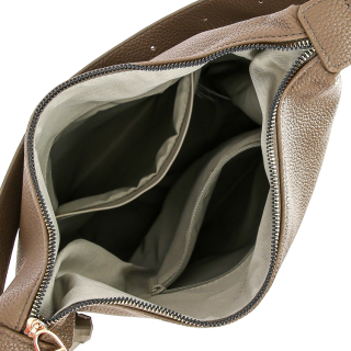 Женская сумка с регулируемой ручкой на плечо, через плечо. Материал верха - экокожа премиум качества. Материал подкладки - полиэстер. Одно отделение на молнии. Внутри: карман для мелочей на передней стенке и карман на молнии на задней стенке. Цвет фурнитуры - золото.