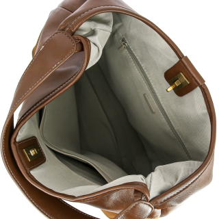 Женская сумка с одной ручкой на плечо. Материал верха - экокожа премиум качества. Материал подкладки - полиэстер. Одно отделение на замочке. Внутри: два кармана для мелочей на передней стенке и карман на молнии на задней стенке. Снаружи: карман на молнии сзади. Цвет фурнитуры - старое золото.