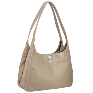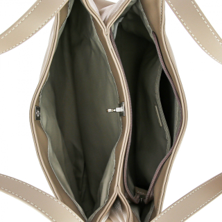 Женская сумка с двумя ручками на плечо. Материал верха - экокожа премиум качества. Материал подкладки - полиэстер. Два отделения: переднее на замочке, заднее на молнии. Внутри: карман для мелочей на передней стенке и карман на молнии на задней стенке. Цвет фурнитуры - серебро.