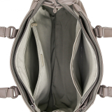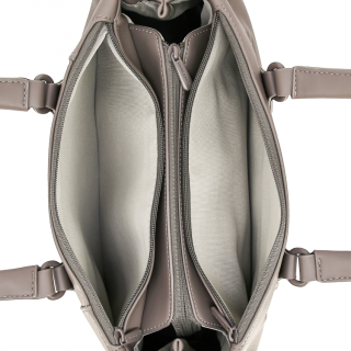 Женская сумка с двумя ручками и регулируемым ремнем на плечо, для документов, формат А4. Материал верха - экокожа премиум качества. Материал подкладки - полиэстер. Три отделения на молниях. Внутри: карман для мелочей на передней стенке и карман на молнии на задней стенке. Снаружи: карман на молнии сзади. Цвет фурнитуры - под цвет материала.