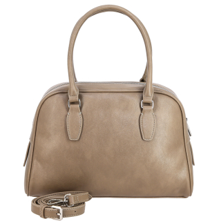 Женская сумка с двумя ручками и регулируемым ремнем на плечо. Материал верха - экокожа премиум качества. Материал подкладки - полиэстер. Одно отделение на молнии. Внутри: карман для мелочей на передней стенке и карман на молнии на задней стенке. Цвет фурнитуры - серебро.