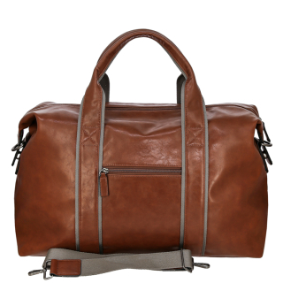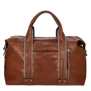 Вместительная дорожная сумка на двух ручках, с длинным ремешком. Материал верха - искусственная кожа. Материал подкладки - полиэстер. Одно отделение на молнии. Внутри: два кармана для мелочей на передней стенке, карман на молнии на задней стенке. Снаружи: карман на молнии и карман на магнитной застежке спереди, карман на молнии сзади.
