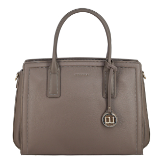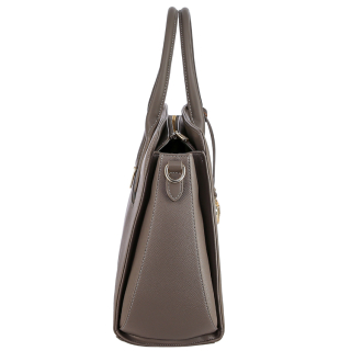 Женская сумка с двумя ручками и регулируемым ремнем на плечо, для документов, формат А4. Материал верха - экокожа премиум качества. Материал подкладки - полиэстер. Одно отделение на молнии с перегородкой на молнии. Внутри: карман для мелочей на передней стенке и карман на молнии на задней стенке. Снаружи: карман на молнии сзади. Цвет фурнитуры - золото.