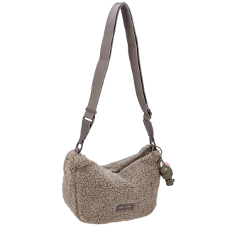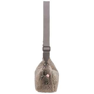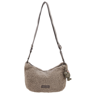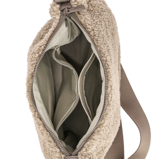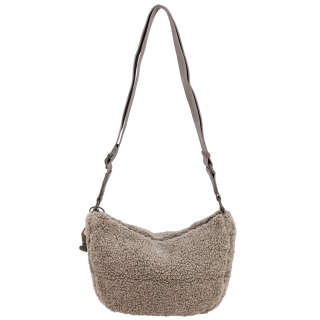 Маленькая женская сумочка кросс-боди через плечо, на плечо, с регулируемым ремешком. Материал верха - текстиль (под мех). Материал подкладки - полиэстер. Одно отделение на молнии. Внутри: карман для мелочей на передней стенке и карман на молнии на задней стенке. Цвет фурнитуры - под цвет материала.