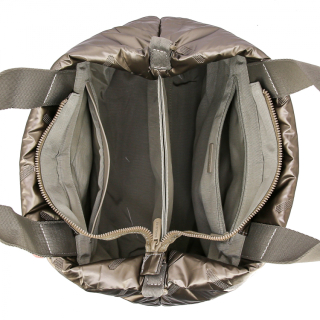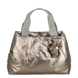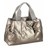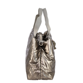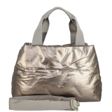 Женская сумка с двумя ручками и регулируемым ремнем на плечо. Материал верха - нейлон. Материал подкладки - полиэстер. Одно отделение на молнии с перегородкой. Внутри: карман для мелочей на передней стенке и карман на молнии на задней стенке. Цвет фурнитуры - под цвет материала.