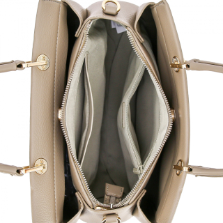 Женская сумка с двумя ручками и регулируемым ремнем на плечо. Материал верха - экокожа премиум качества. Материал подкладки - полиэстер. Три отделения: центральное на молнии, боковые на магнитных замочках. Внутри: карман для мелочей на передней стенке и карман на молнии на задней стенке. Цвет фурнитуры - золото.