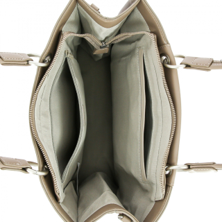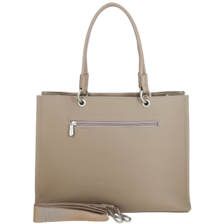 Женская сумка с двумя ручками и регулируемым ремнем на плечо, для документов, формат А4. Материал верха - экокожа премиум качества. Материал подкладки - полиэстер. Одно отделение на молнии. Внутри: карман для мелочей на передней стенке и карман на молнии на задней стенке. Снаружи: карман на кнопке спереди и карман на молнии сзади. Цвет фурнитуры - серебро.
