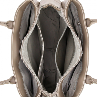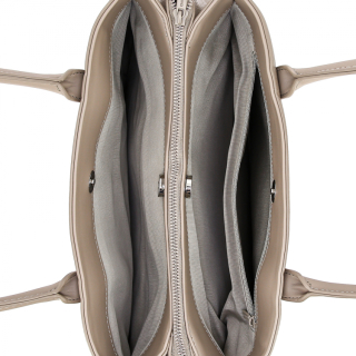 Женская сумка с двумя ручками на плечо. Материал верха - экокожа премиум качества. Материал подкладки - полиэстер. Три отделения: центральное на молнии, боковые на магнитных замочках. Внутри: карман для мелочей на передней стенке и карман на молнии на задней стенке. Цвет фурнитуры - под цвет материала.