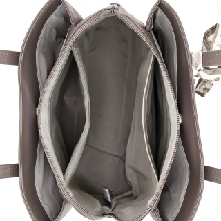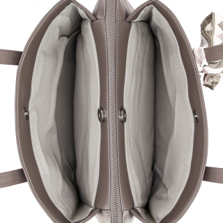 Женская сумка с двумя ручками на плечо. Материал верха - экокожа премиум качества. Материал подкладки - полиэстер. Три отделения: центральное на молнии, боковые на магнитных замочках. Внутри: карман для мелочей на передней стенке и карман на молнии на задней стенке. Цвет фурнитуры - под цвет материала + серебро.