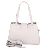 Женская сумка с двумя ручками и регулируемым ремнем на плечо. Материал верха - экокожа премиум качества. Материал подкладки - полиэстер. Три отделения: центральное на молнии, боковые под хлястиком. Внутри: карман для мелочей на передней стенке и карман на молнии на задней стенке. Цвет фурнитуры - серебро + под цвет материала.