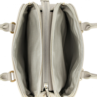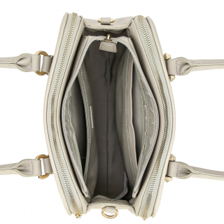 Женская сумка с двумя ручками и регулируемым ремнем на плечо. Материал верха - экокожа премиум качества. Материал подкладки - полиэстер. Три отделения на молниях. Внутри: карман для мелочей на передней стенке и карман на молнии на задней стенке. Цвет фурнитуры - золото.