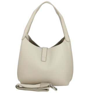 Женская сумка с двумя ручками и регулируемым ремнем на плечо. Материал верха - экокожа премиум качества. Материал подкладки - полиэстер. Три отделения: центральное на молнии, боковые без замков под хлястиком. Внутри: карман для мелочей на передней стенке и карман на молнии на задней стенке. Цвет фурнитуры - серебро + под цвет материала.