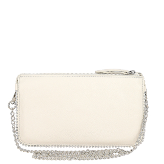 Маленькая женская сумочка кросс-боди через плечо, на плечо, на цепочке. Материал верха - экокожа премиум качества. Материал подкладки - полиэстер. Под общей молнией находятся три отделения, центральное на отдельной молнии. Внутри: карман для мелочей на передней стенке и карман на молнии на задней стенке. Цвет фурнитуры - серебро.