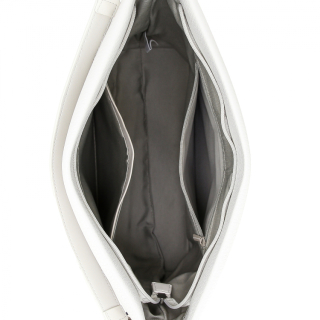 Женская сумка с одной ручкой и регулируемым ремнем на плечо. Материал верха - экокожа премиум качества. Материал подкладки - полиэстер. Одно отделение на молнии. Внутри: карман для мелочей на передней стенке и карман на молнии на задней стенке. Снаружи: карман на молнии сзади. Цвет фурнитуры - серебро.