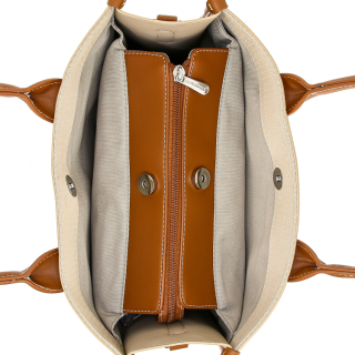 Женская сумка с двумя ручками и регулируемым ремнем на плечо, для документов, формат А4. Материал верха - экокожа премиум качества. Материал подкладки - полиэстер. Три отделения: центральное на молнии, боковые на магнитных замочках. Внутри: карман для мелочей на передней стенке и карман на молнии на задней стенке. Цвет фурнитуры - серебро.