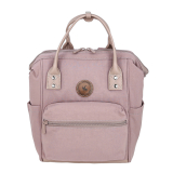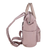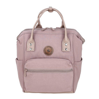 Рюкзак-сумка женский городской маленький с двумя ручками и регулируемыми ремнями. Материал верха - нейлон (для цветов черный, серый, розовый) либо экокожа (для цветов песочный, голубой, бронзовый). Материал подкладки - полиэстер. Одно отделение на молнии. Внутри: карман для мелочей на передней стенке и отделение для планшета на задней стенке. Снаружи: карман на молнии спереди; карман на молнии сзади; открытые карманы по бокам. Цвет фурнитуры - серебро + под цвет материала.