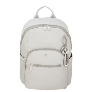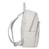 Рюкзак женский городской маленький с ручкой и регулируемыми ремнями. Материал верха - нейлон. Материал подкладки - полиэстер. Одно отделение на молнии. Внутри: карман для мелочей на передней стенке и карман на молнии на задней стенке. Снаружи: два кармана на молниях спереди; карман на молнии сзади; открытые карманы по бокам. Цвет фурнитуры - под цвет материала.