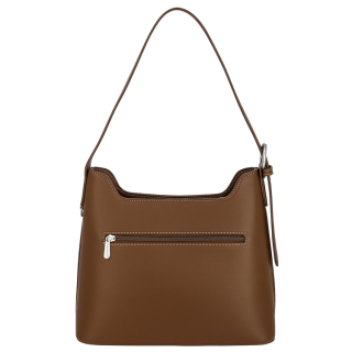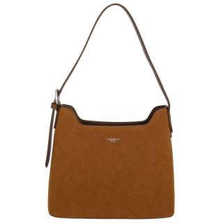 Женская сумка с ручкой регулируемой длины на плечо. Материал верха - искусственная замша, экокожа премиум качества. Материал подкладки - полиэстер. Одно отделение на молнии. Внутри: карман для мелочей на передней стенке и карман на молнии на задней стенке. Снаружи: карман на молнии сзади. Цвет фурнитуры - серебро.