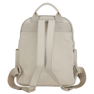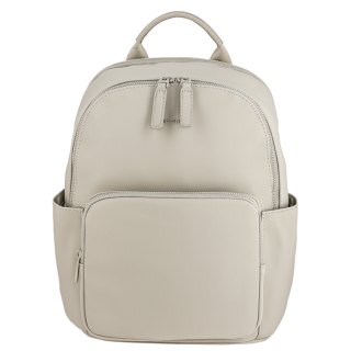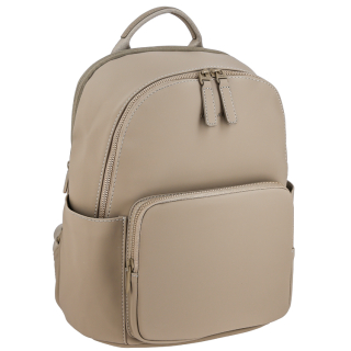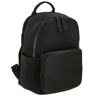 Рюкзак женский городской маленький с ручкой и регулируемыми ремнями. Материал верха - экокожа премиум качества. Материал подкладки - полиэстер. Два отделения на молниях. Внутри: карман для мелочей на передней стенке и карман на молнии на задней стенке. Снаружи: карман на молнии спереди и открытые карманы по бокам. Цвет фурнитуры - под цвет материала.