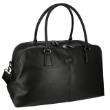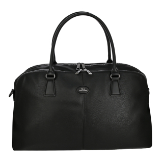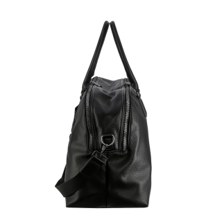 Дорожная сумка с двумя ручками и дополнительным ремнем на плечо. Материал верха - экокожа премиум качества. Материал подкладки - полиэстер. Два отделения на молниях. Внутри: два кармана для мелочей на передней стенке и карман на молнии на задней стенке. Снаружи: крепление на ручку чемодана и карман на молнии сзади. Цвет фурнитуры - серебро.