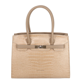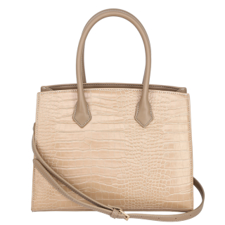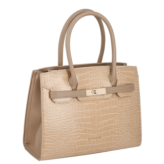 Женская сумка с двумя ручками и регулируемым ремнем на плечо. Материал верха - экокожа премиум качества. Материал подкладки - полиэстер. Три отделения: центральное на молнии, боковые на магнитных замочках. Внутри: карман для мелочей на передней стенке и карман на молнии на задней стенке. Цвет фурнитуры - золото.