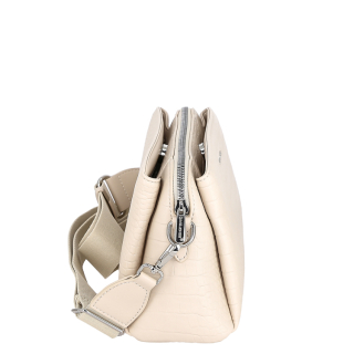 Маленькая женская сумочка кросс-боди через плечо с регулируемым ремешком. Материал верха - экокожа премиум качества. Материал подкладки - полиэстер. Три отделения: центральное на молнии, боковые на магнитных замочках. Внутри: карман для мелочей на передней стенке и карман на молнии на задней стенке. Цвет фурнитуры - серебро.